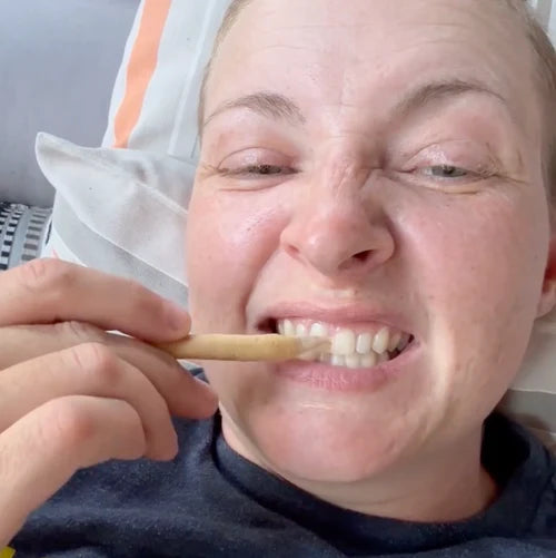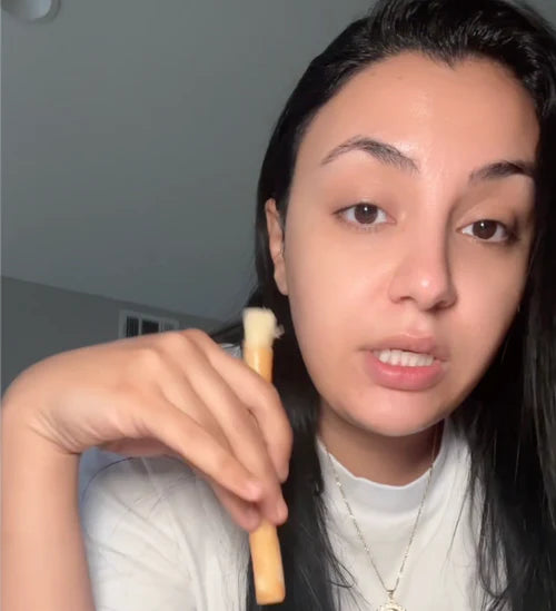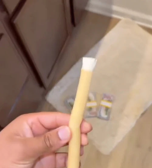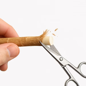 Bite or trim the tip to reveal bristles, then brush using short, gentle strokes — like a toothbrush. Cut and refresh the tip every few days for best results.